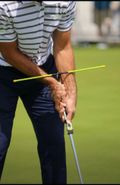 The SWING PATH, PUTTER FACE ANGLE, and SOLID IMPACT can all be dramatically affected by how the hands, wrists, and forearms move during the swing motion. If there is too much wrist hinging action during the swing that will cause the putter face angle to change and not remain SQUARE to the intended aim line. This can also cause the swing path to become inconsistent and prevent SOLID IMPACT. Another common action that creates the same negative consequences is too much rotation of the hands and forearms during the swing motion. "The Putting Stroke Teacher" rods easily and quickly solve these problems by using the golfer's sense of FEEL to provide effective feedback. If the golfer has too much wrist hinging action the rods will slide up and down the forearms during the swing. When you FEEL the rods sliding you know to reduce the wrist action until the rods remain stationary on the forearms during the swing. If there is too much forearm rotation the golfer will FEEL the pressure of the rods against the forearms change on each arm as the putter swings. The golfer knows to focus on maintaining gentle and equal pressure of the rods on both forearms during the swing to keep that putter face SQUARE, repeat a consistent SWING PATH, and produce SOLID IMPACT.